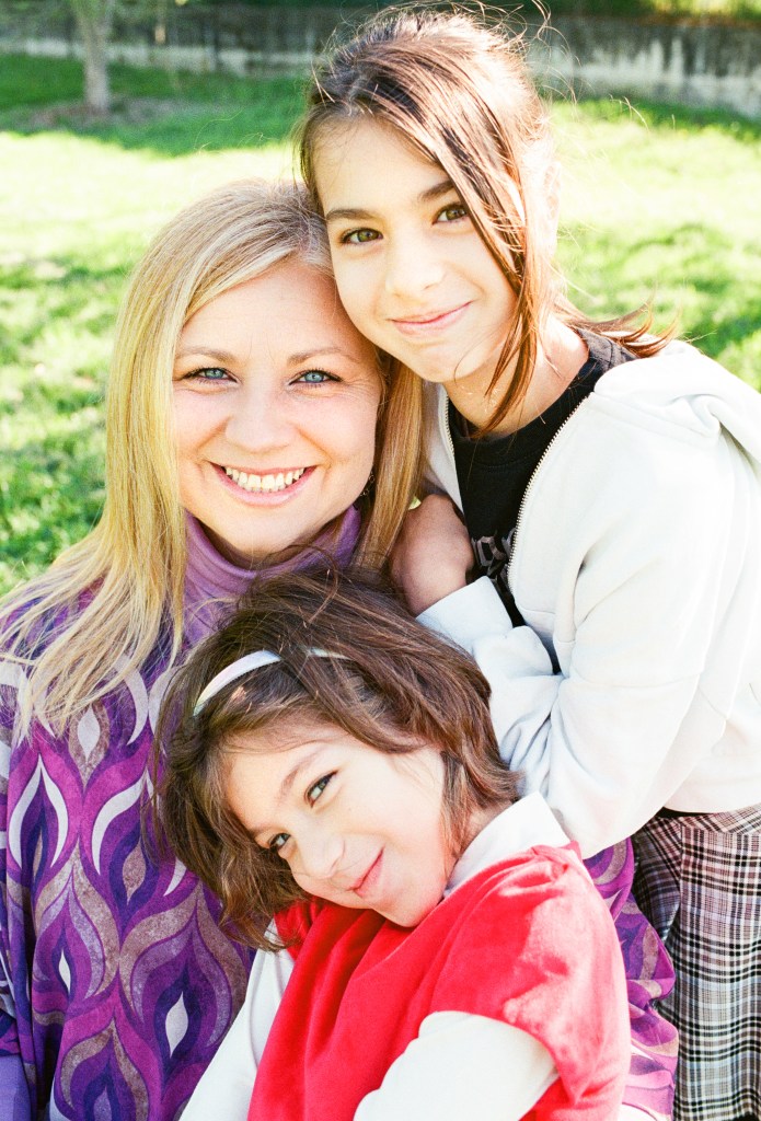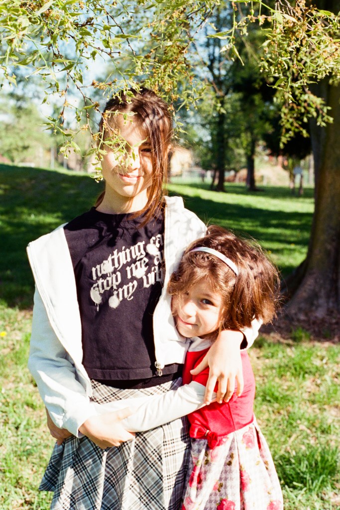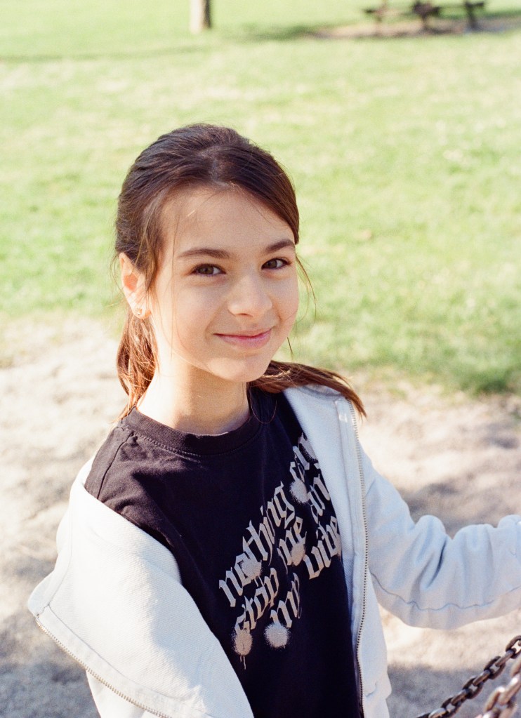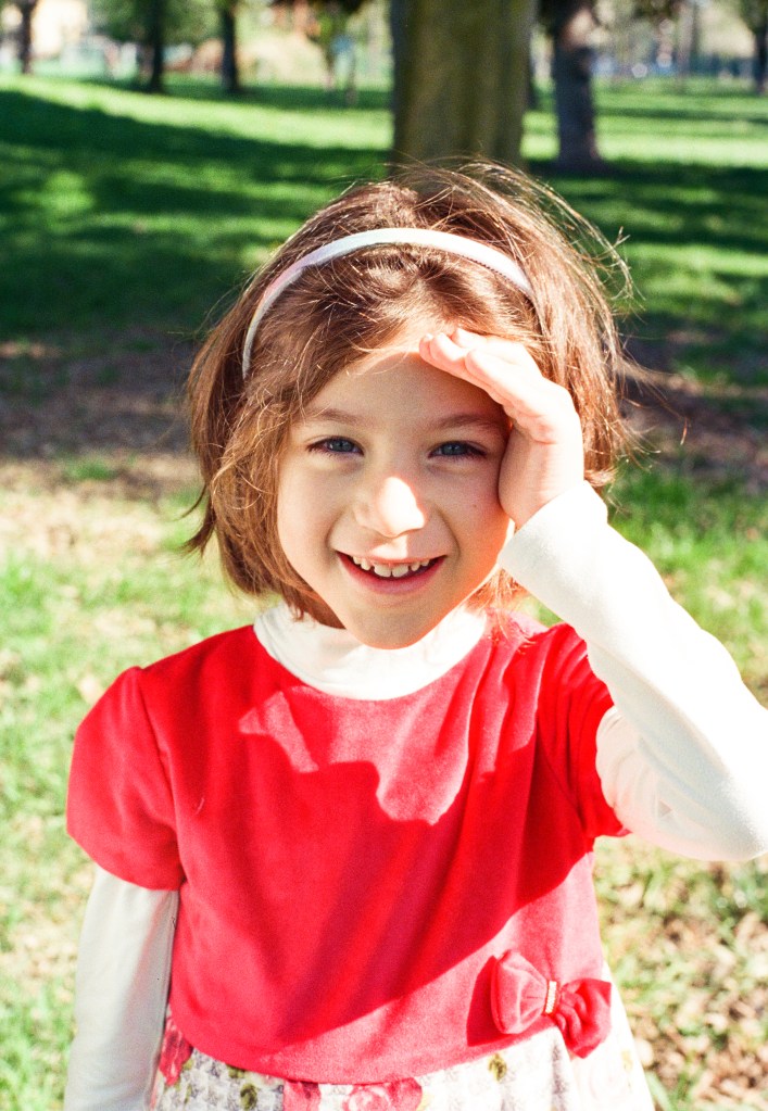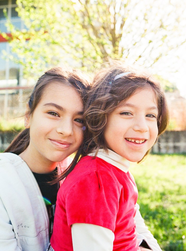 I took some portraits of this lovely family last weekend and I’ve been on tenterhooks for a week… I used two analogue cameras, the Canon EOS 850 and the AT-1. I’d already used the EOS 850 (which is fully automatic) with good results, whereas the AT-1 was a complete unknown to me. To be frank, I’d NEVER used a fully manual film camera before! So before I started, I was quite nervous…Luckily, the girls were two natural models; the older one was spontaneous and calm, and I loved the way the little one posed in front of the camera, she was so at ease, you can tell that she enjoyed it, just like a real actress!