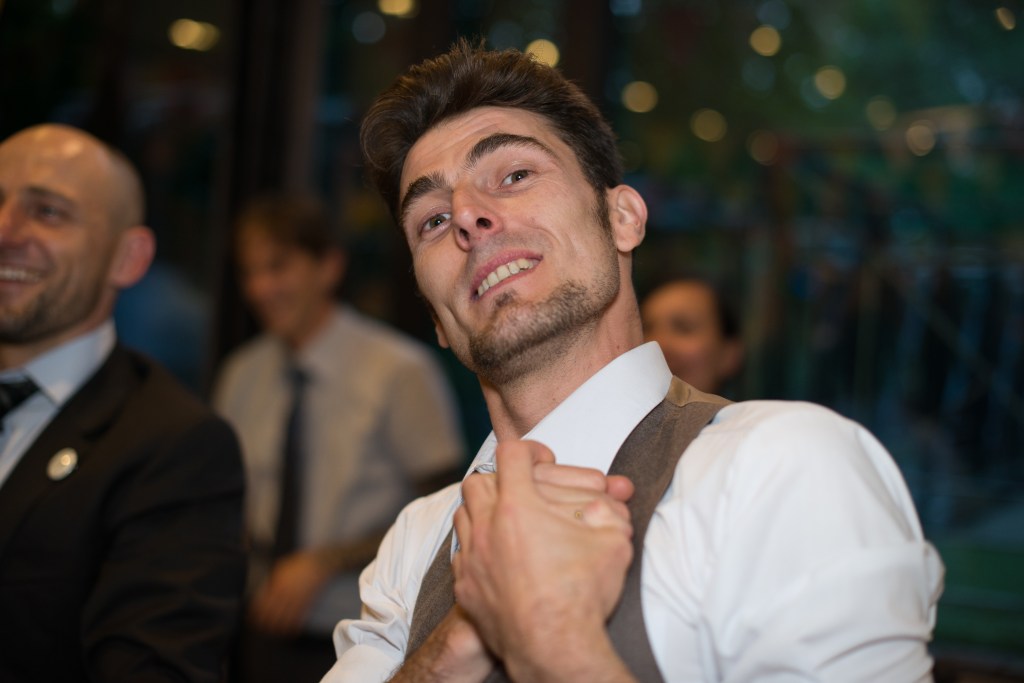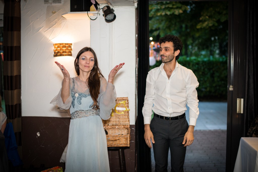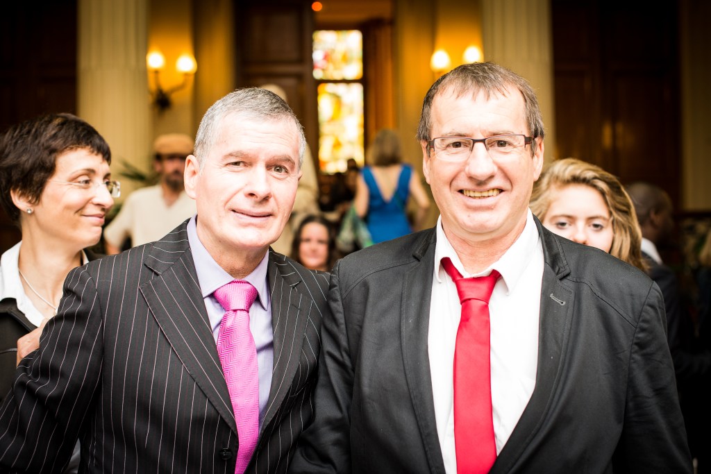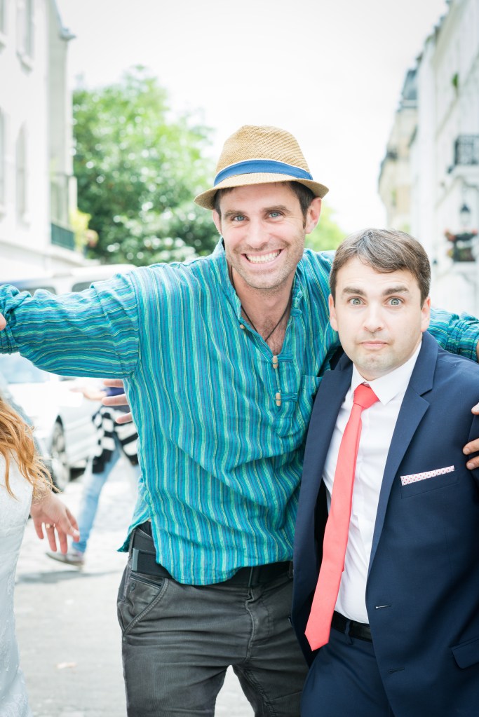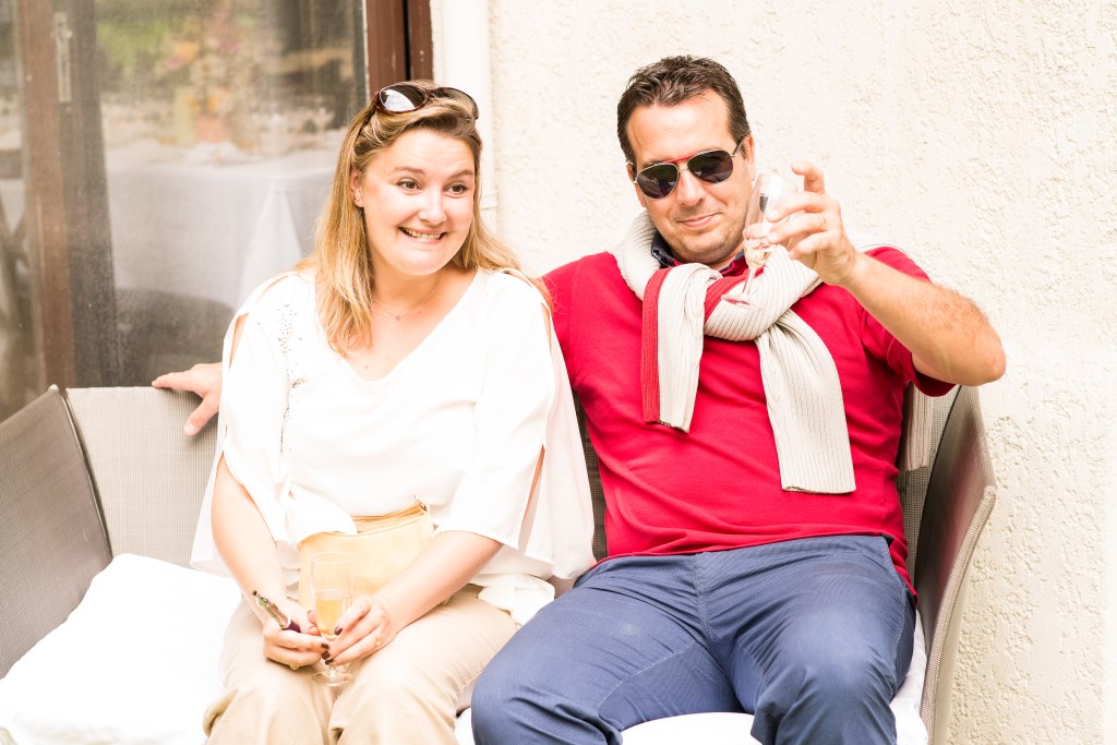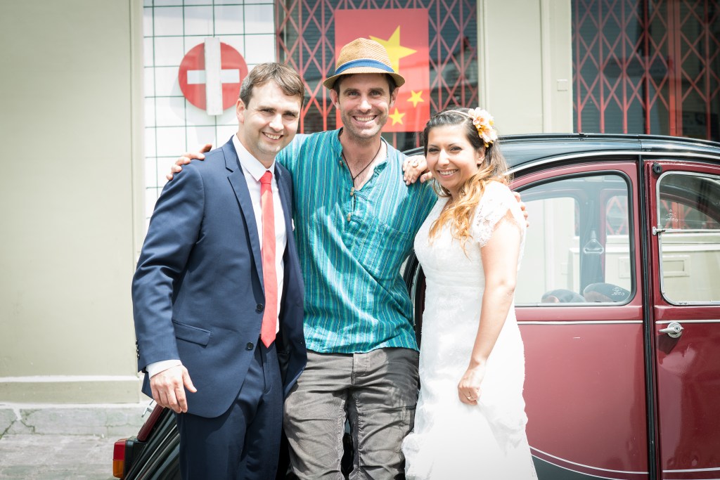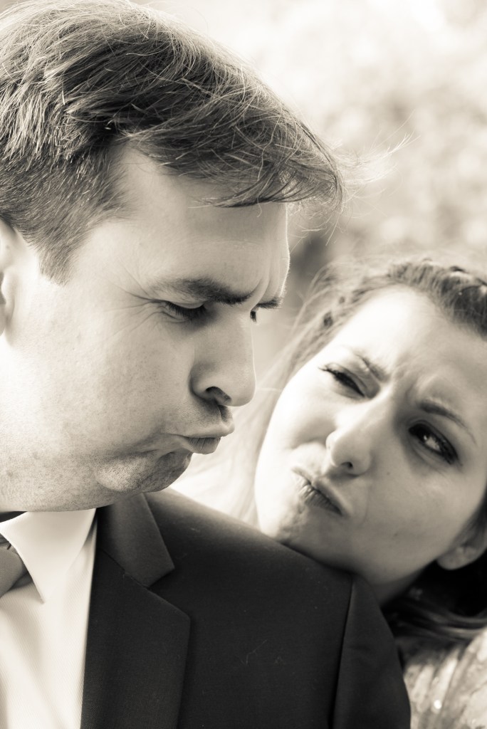 Trying to get serious but, hey, a few photo-bombers dived in our shooting!