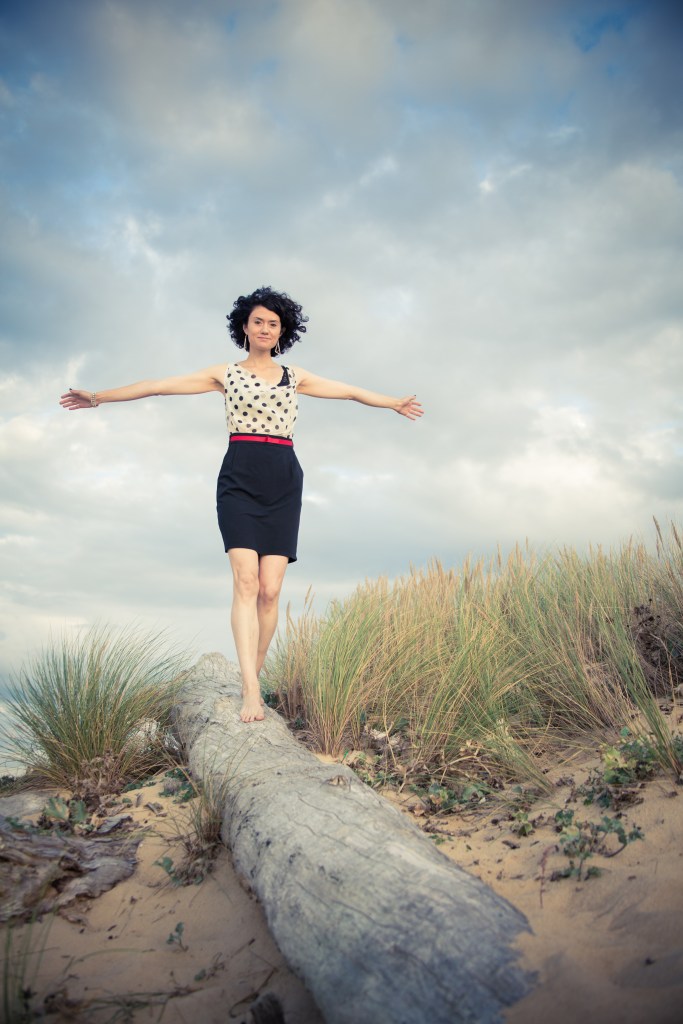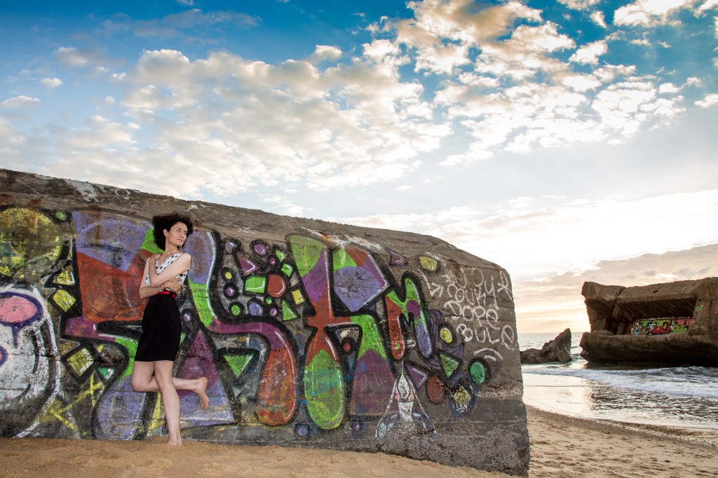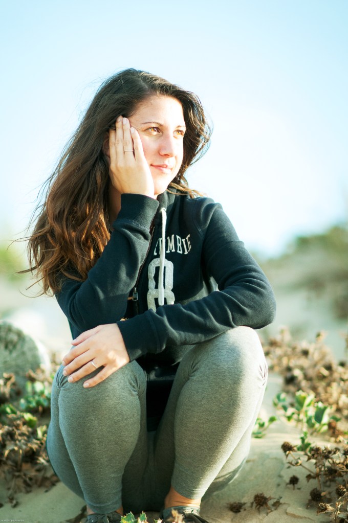 Claudia was a colleague, we worked together for a few weeks on the construction site. I still remember her genuine laugh and her simplicity. When she knew that I was into photography, she asked me some questions about my activity, I asked her to pose for me, she accepted and…we met in Labenne-Océan, where I lived. My place was real close to the Ocean, one of my dreams that became true (even though for a short while)! It was an unusually hot October afternoon, we were not far from 30 degrees. The beach was beautiful and relatively quiet, and the golden hour was just around the corner…