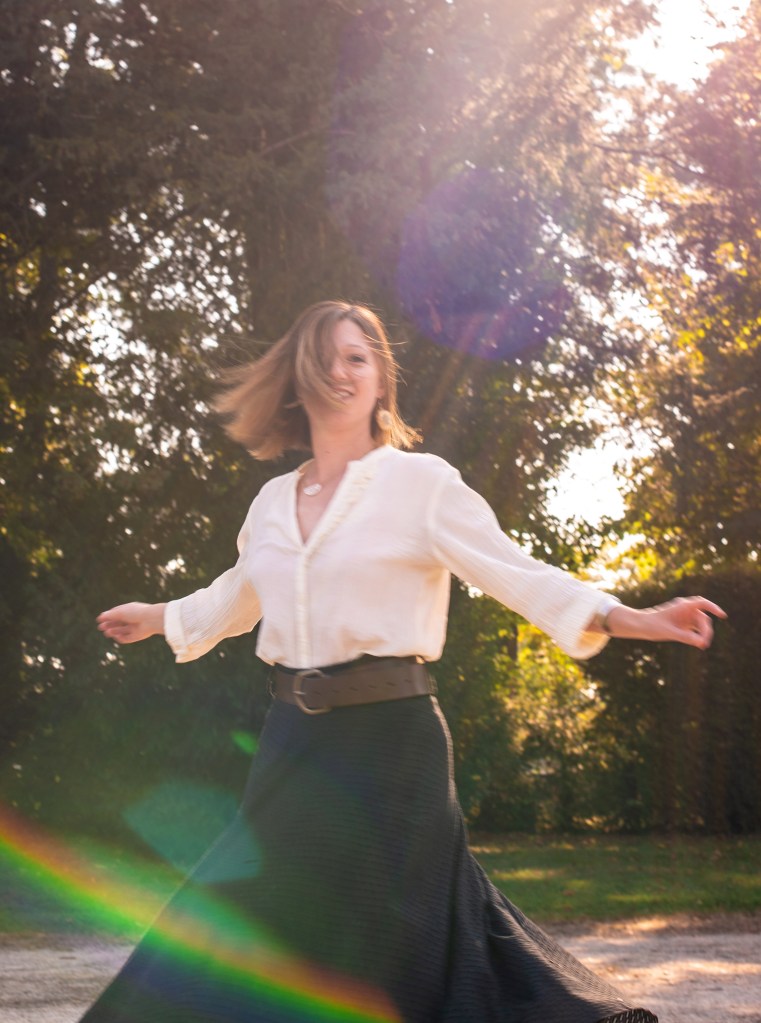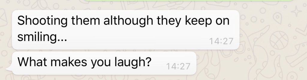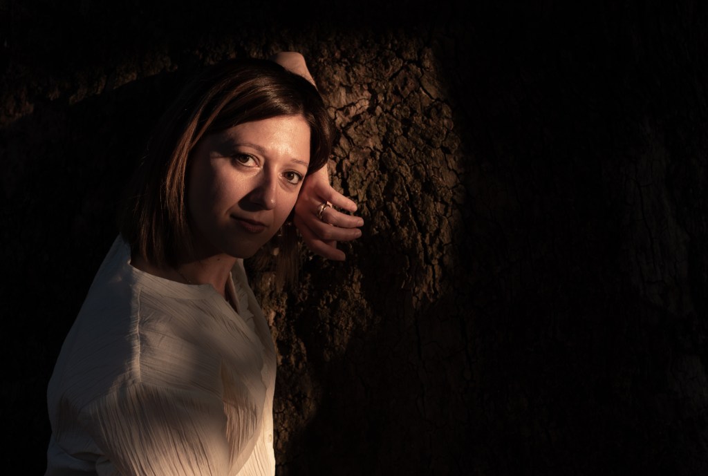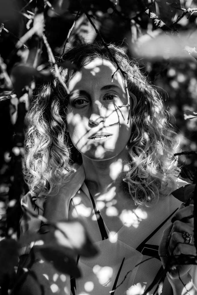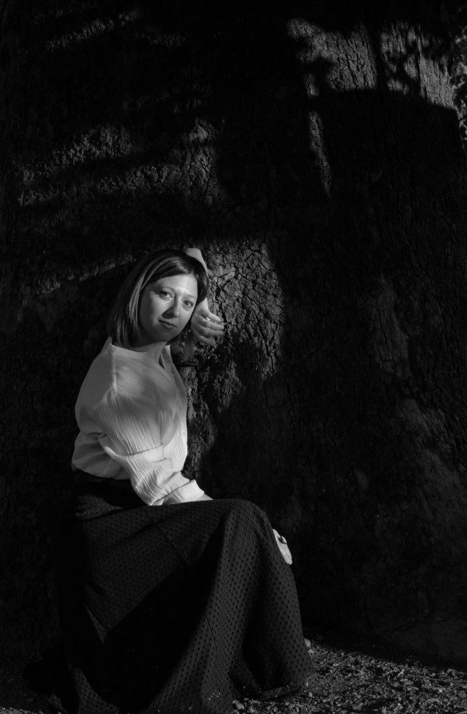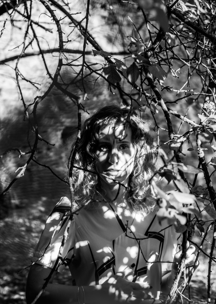 We met one evening at 6 pm in some fields outside the city. It was a clear blue night, with a powerful dry heat (33 celsius!). I enjoyed posing for her. Being a photographer myself, I decided literally “to shut my mouth” and follow her lead. She was in charge & I was the subject. I was impressed by her preparation. She had clear ideas of what she wanted. Also, she had already prepared part of the set before we started to shoot (a romantic chair on the side of the field, with a white sheet hung from a tree) . She is polite, determined, clear-minded and massively focused on details.